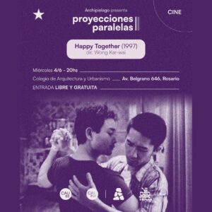 En el mes del orgullo se proyecta Happy Together (1997), una película del director hongkonés Wong Kar-wai filmada casi completamente en nuestra bella Argentina y retratada en las vibrantes e hipnóticas imágenes que caracterizan a Christopher Doyle, su inseparable director de fotografía. Esta historia de desencuentro entre los personajes comienza con el deseo de viajar a las cataratas del Iguazú, buscando así recomponer su inestable relación. Lai Yiu-fai (Tony Leung) y Ho Po-wing (Leslie Cheung) emprenden con sus escasos medios el viaje al país, pero, una vez ahí, la ciudad capital los enredará en una poética y áspera relación de desamor y excesos no solo entre ellos sino también con la ciudad.